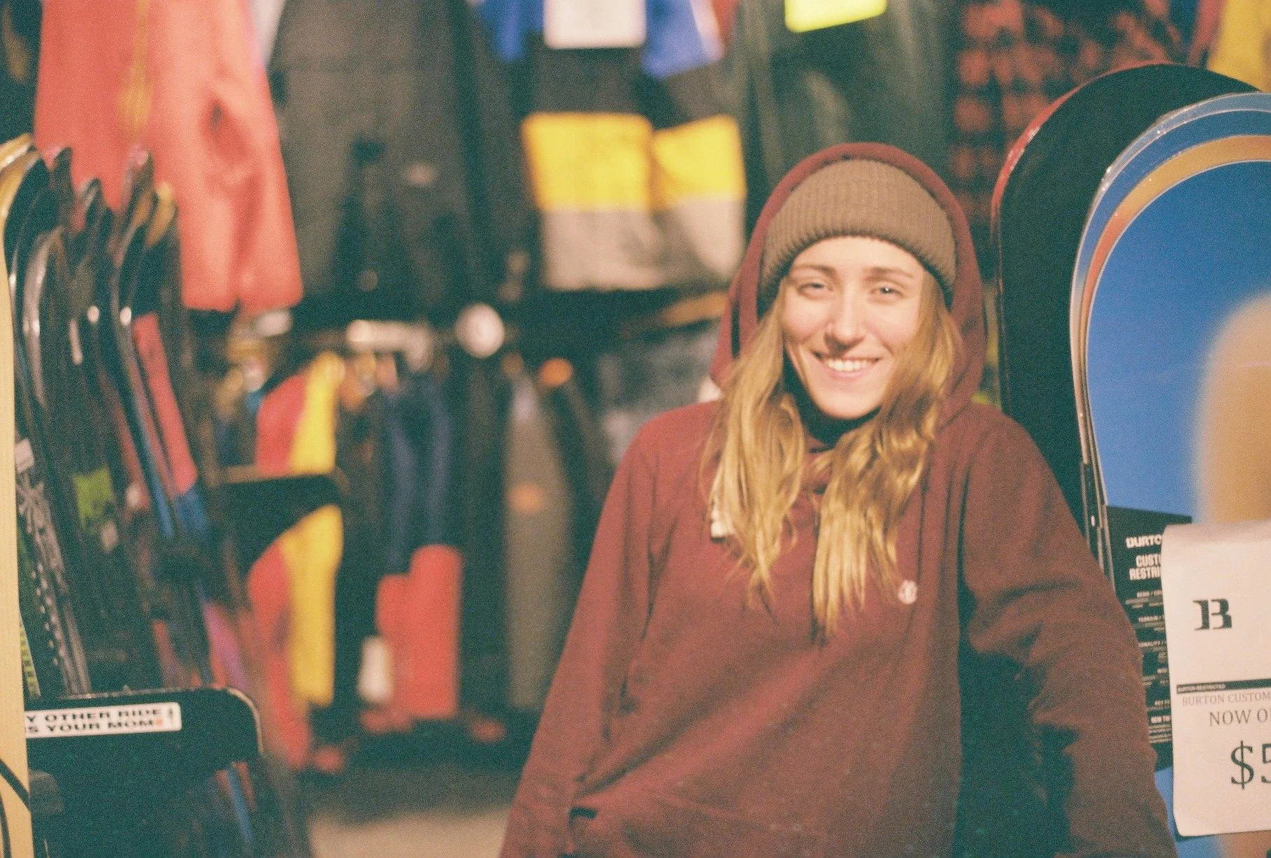 After working part-time at the shop for two years, Abby was given the opportunity to take on additional roles as the buyer for Rude Girls and the manager for both Rude Boys and Rude Girls. "Nerding out about snowboards is something I love to do, so working at Rude Girls has never felt like a job or a career to me," says Abby.